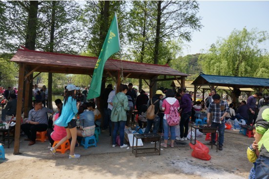春游行程:上午燒烤,下午自由活動(dòng)(小憩、打羽毛球、爬山、打牌、垂釣等)。
