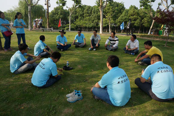 吃著勝利的果實,我們奔赴下一站---森林公園。這個生態(tài)原始,寧靜悠遠的地方,門口的瀑布給人很強的視覺沖擊力,大家趕緊留影拍照。游園走累了,便圍坐在一起玩起了一種“天黑請閉眼”的游戲,湯總做起了“法官”,這是一種智力游戲,考驗大家的邏輯推理能力。寧靜的公園,美麗的景色,讓人不得不感慨:生態(tài)的美好!