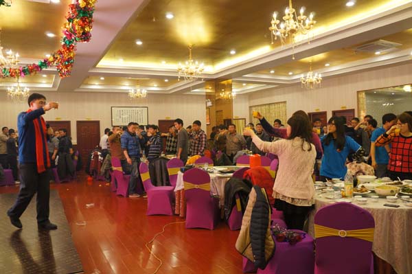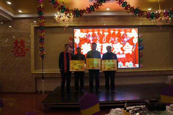 晚上的聚餐活動(dòng),湯水江總經(jīng)理分別為“高塍鎮(zhèn)先進(jìn)生產(chǎn)者姬中義、先進(jìn)生產(chǎn)部門、優(yōu)秀員工、希望之星”頒獎(jiǎng),同時(shí)欣賞公司自編自演的文娛節(jié)目,優(yōu)美的古箏彈奏,我們已醉夢其中,一曲流行的《小蘋果》舞蹈表演把晚會(huì)推進(jìn)高潮,層層跌宕,高潮不斷;(dòng)的抽獎(jiǎng)活動(dòng)更是撩人心懸,一等獎(jiǎng)華為手機(jī)被設(shè)計(jì)部小陶領(lǐng)取,另外還有各種大小獎(jiǎng)項(xiàng)分別被不同的幸運(yùn)者抽中。