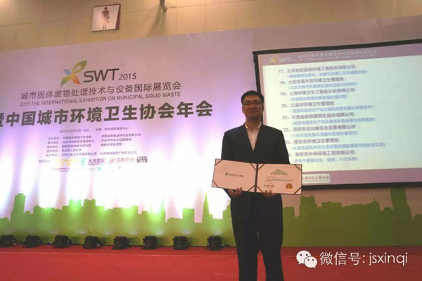 在13日召開的中國(guó)城市環(huán)境衛(wèi)生協(xié)會(huì)年會(huì)上,新奇環(huán)保上報(bào)的“高效集成滲濾液處理一體化裝置”,喜獲“爭(zhēng)優(yōu)創(chuàng)新工藝大獎(jiǎng)”。湯水江總經(jīng)理上臺(tái)領(lǐng)獎(jiǎng),他表示新奇環(huán)保一定會(huì)珍惜這個(gè)榮譽(yù),抓住機(jī)遇,砥礪前行,繼續(xù)在環(huán)衛(wèi)行業(yè)專業(yè)領(lǐng)域深耕細(xì)作,做精做專,全力打造“一體化環(huán)衛(wèi)綜合服務(wù)商”。