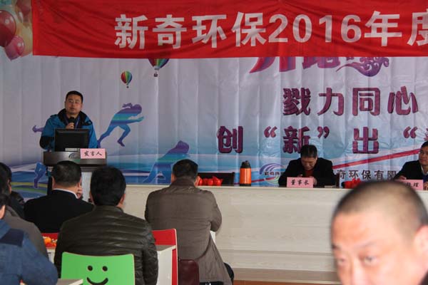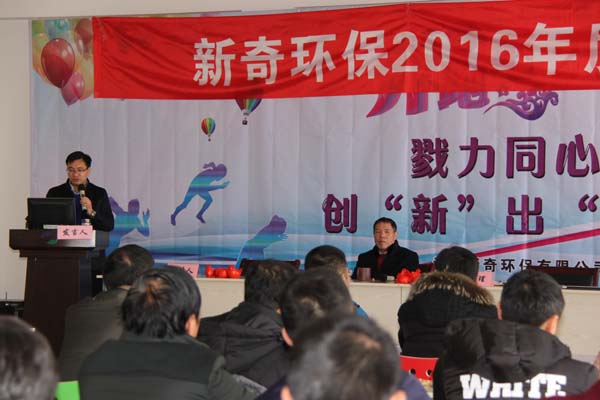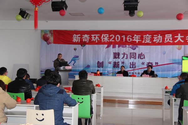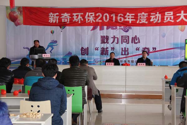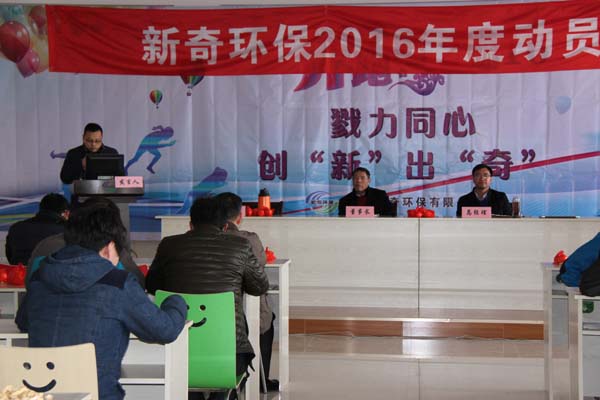 伴隨著春暖花開、春意盎然的二月,新奇環(huán)保董事長(zhǎng)王習(xí)清、總經(jīng)理湯水江攜全體員工踏上了新一年的征程。2016年2月16日上午9點(diǎn)18分,新奇環(huán)保在這良辰吉時(shí)正式拉開了猴年的序幕。下午1點(diǎn),新奇上下全體成員聚集在公司五樓匯報(bào)廳舉行了2016年度動(dòng)員大會(huì)。