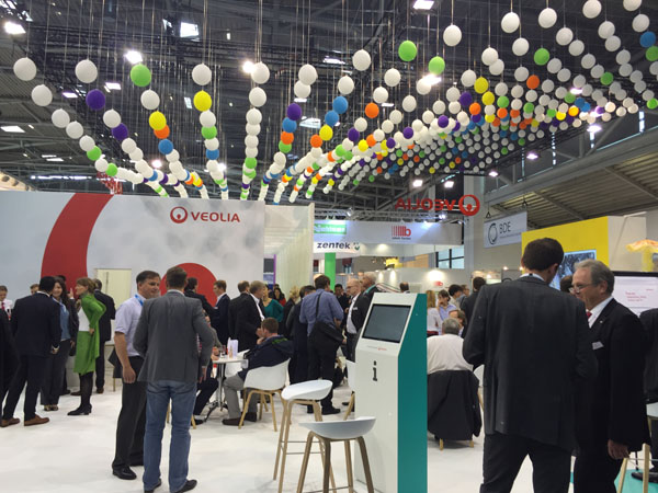 在展會上,能看到很多平時耳熟能祥的知名企業(yè),比如法國威立雅,他們的展臺人氣很旺,空中布滿了五顏六色的氣球,顯目的公司LOGO穿插其中,大家歡快的交流著,一份輕松和愉悅,這種情景,在其他展位隨處可見,也是和國內(nèi)明顯的區(qū)別。
