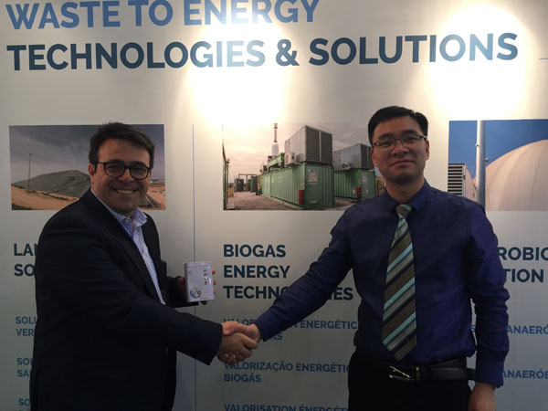 走著走著,阿湯哥發(fā)現(xiàn)一家專門做沼氣發(fā)電的企業(yè),很適合公司的需求,于是和對方的技術(shù)經(jīng)理聊起來了,從處理工藝到沼氣產(chǎn)量,從投資到可行性分析,專業(yè)人就談專業(yè)的事,談著談著,手就握到了一起,中國的茶葉送給同行品嘗一下。