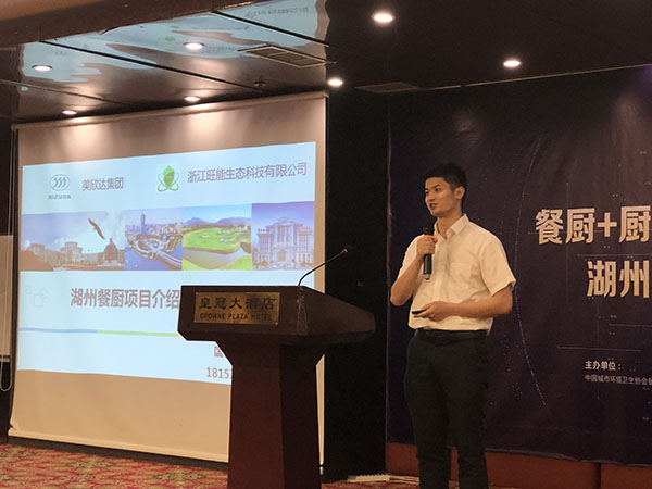 旺能生態(tài)副總經(jīng)理匡彬介紹了湖州市餐廚處理項(xiàng)目的情況;
