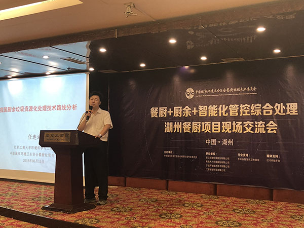 由新奇環(huán)保和青島天人、寧波開(kāi)城、旺能生態(tài)共同承辦的餐廚交流活動(dòng),在湖州皇冠大酒店5樓隆重召開(kāi),100多名參會(huì)人員相聚一堂,會(huì)議邀請(qǐng)了中環(huán)協(xié)餐廚委員會(huì)主任連海教授為嘉賓,介紹了:“廚余垃圾資源化利用發(fā)展新模式”;