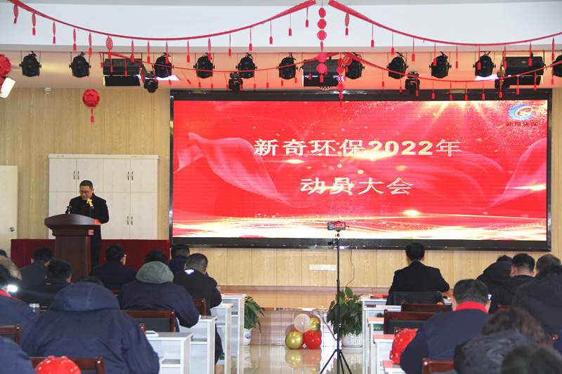 新的一年、新的希望,開好局、起好步、爭(zhēng)上游!2022年2月9日,新奇環(huán)保在公司五樓匯報(bào)大廳隆重召開了2022年新春開工動(dòng)員大會(huì)。向回歸工作崗位的每一位新奇人發(fā)出虎年開工動(dòng)員,希望全體成員勠力同心,以飽滿的工作熱情開啟虎年新篇章。公司董事長(zhǎng)兼總經(jīng)理湯水江出席會(huì)議并致辭,總經(jīng)辦主任史葉飛主持會(huì)議,全體新奇人通過線下參會(huì)與線上直播結(jié)合的形式,參加了本次大會(huì)。