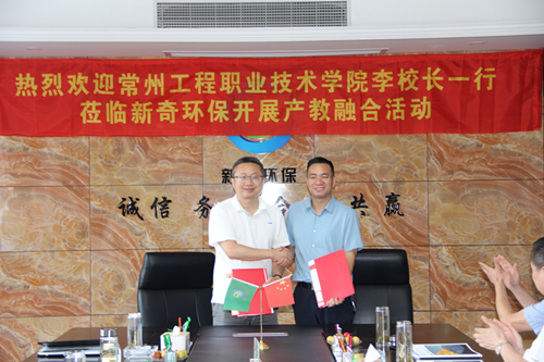 為推動(dòng)形成“校企合作 產(chǎn)教融合”的創(chuàng)新校企合作模式,實(shí)現(xiàn)高校與企業(yè)、經(jīng)濟(jì)效益與社會(huì)效益雙贏的新局面。2022年7月24日上午,新奇環(huán)保與常州工程職業(yè)技術(shù)學(xué)院就“校企合作 產(chǎn)教融合”達(dá)成合作,并正式簽署“常州工程職業(yè)技術(shù)學(xué)院檢驗(yàn)檢測校外教學(xué)實(shí)踐教學(xué)基地”培養(yǎng)協(xié)議。
