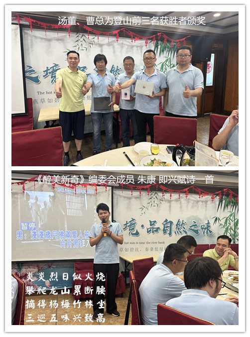 在為期半天的活動(dòng)中,我們首先到了團(tuán)建活動(dòng)目的地之一的龍山。在董事長湯水江的號(hào)令下,大家興致勃勃地開始了一場爬山比賽。大家相互攙扶,相互協(xié)助,相互鼓勵(lì),董事長湯水江更是以身作則,帶領(lǐng)大家奮勇攀登,充分發(fā)揚(yáng)了團(tuán)結(jié)拼搏、砥礪前行的優(yōu)良作風(fēng)。