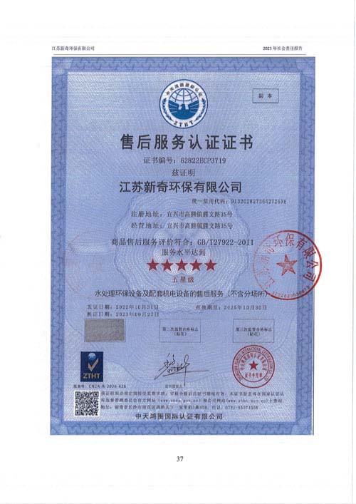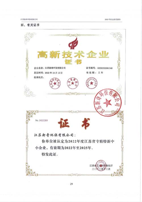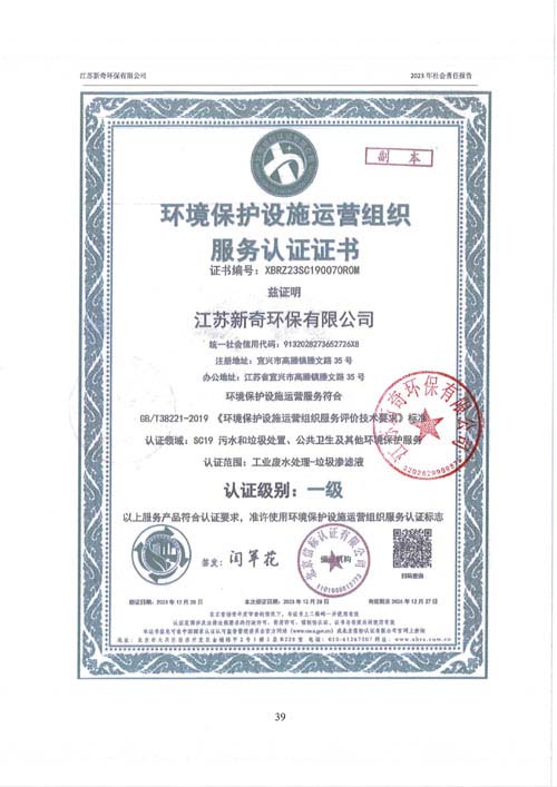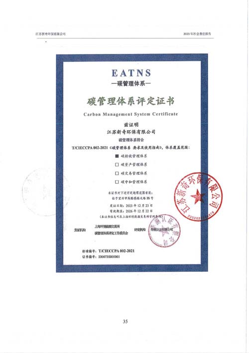 江蘇新奇環(huán)保有限公司產(chǎn)品碳足跡核查聲明