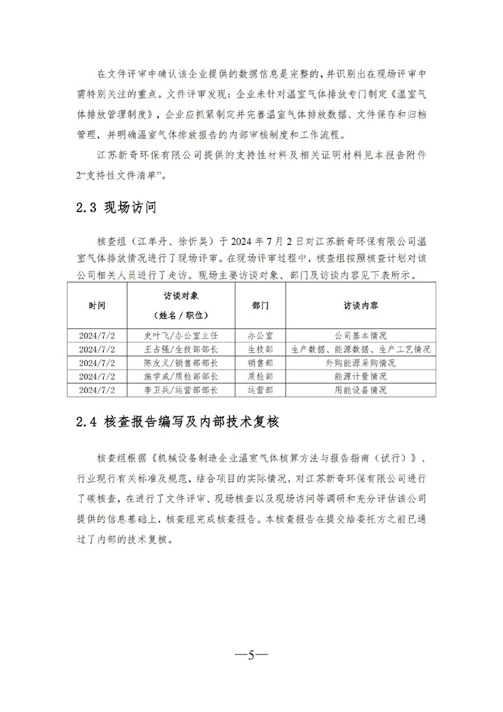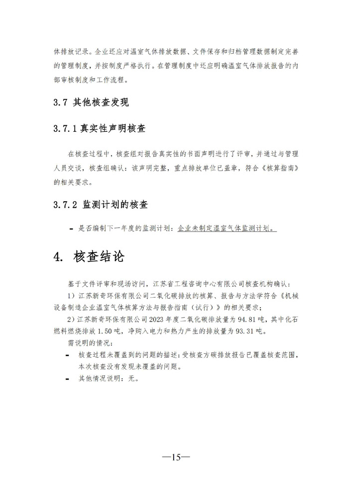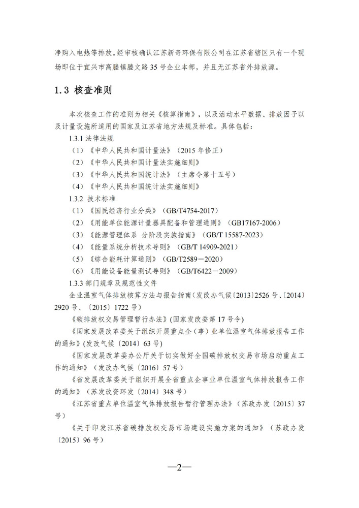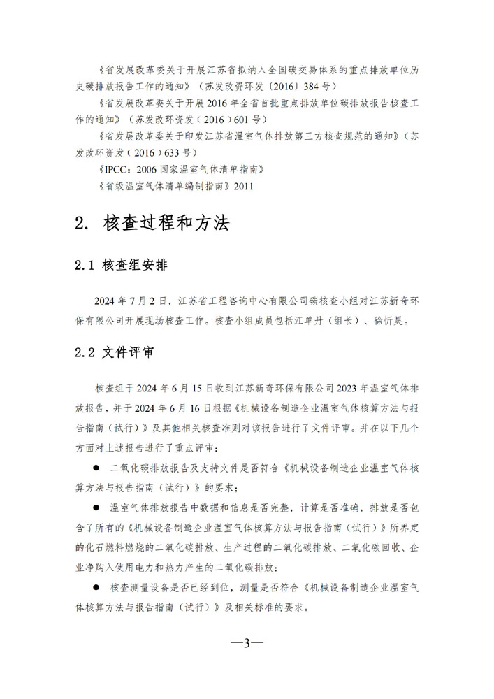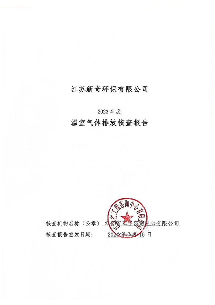 江蘇新奇環(huán)保有限公司溫室氣體排放核查報告
